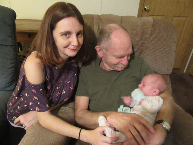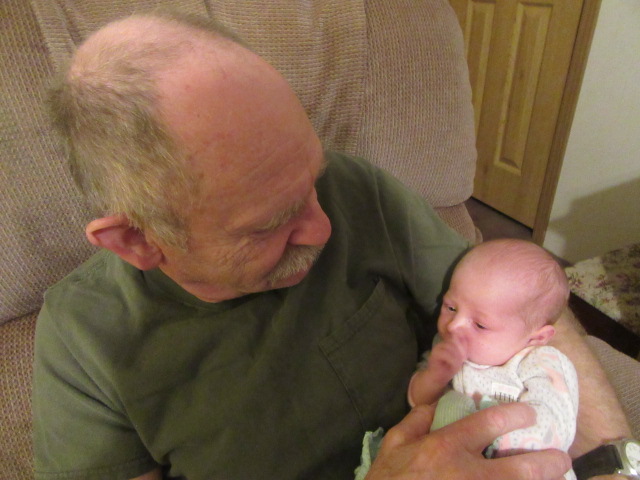 Hello everyone! I hope this post finds you well. My daughter and her family came up for a visit this afternoon (Saturday). I finally got to see my new granddaughter, Allison, in person. This first photo is priceless. It is like she is saying, “Who is that old fart?”