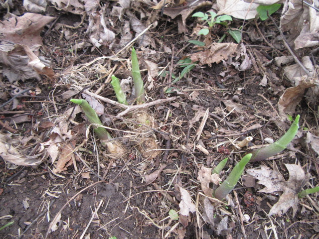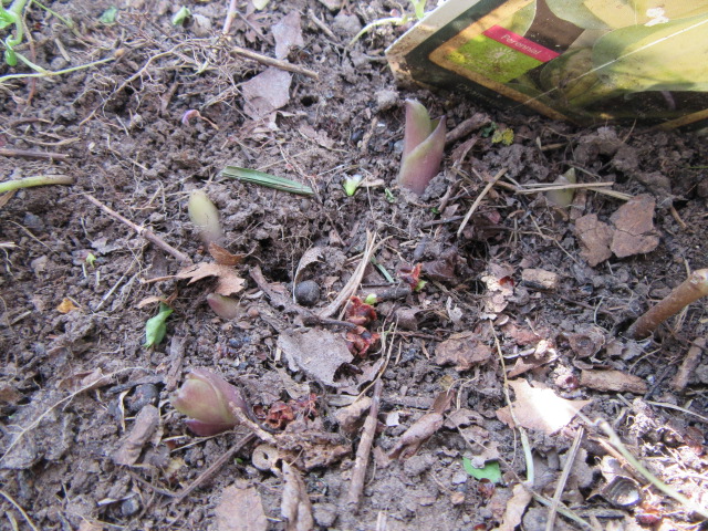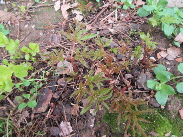 While I was photographing the Heuchera I looked under the leaves to see what the Hosta were doing. While I expected to see nothing, I was pleasantly surprised. I first checked the Hosta ‘Abiqua Drinking Gourd’ and saw a sprout but I didn’t take a photo. Then I checked Hosta ‘Potomac Pride’ and had to take a photo. I didn’t check the rest because I knew that would lead to more photos and this Six On Saturday post would be all out of whack. Seeing the Hosta sprouting so early is definitely weird…