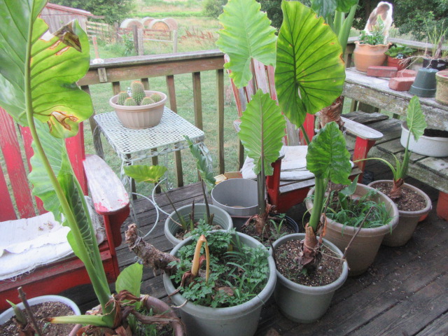 Well, I better close this post so I can do some potting. I am also in the process of repotting the cactus and succulents. I know “most people” probably do it in the spring, but I like to do it in the fall and winter because their potting soil gets very hard once you stop watering. From the time I bring the plants inside for the winter in mid-October until sometime in late April to early May, the cactus and succulents get barely any water. Because of that, the peat in their potting mix gets VERY HARD so I re-pot with fresh so it will be nice and airy. I mix Miracle Grow Potting Soil 50/50 with pumice. I used 1/8″ before but I have switched to 1/4″.