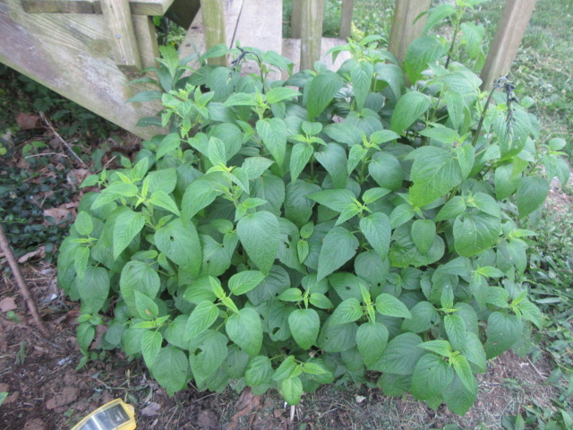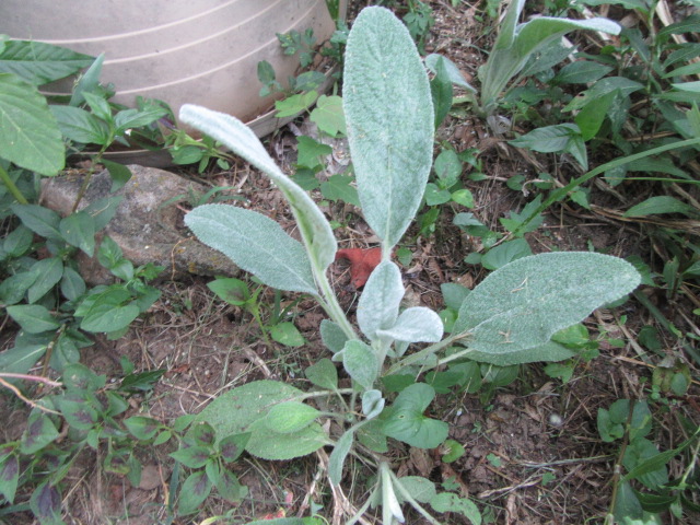 Phlomis ‘Edward Bowles’ under the pot on 2-8-20.
