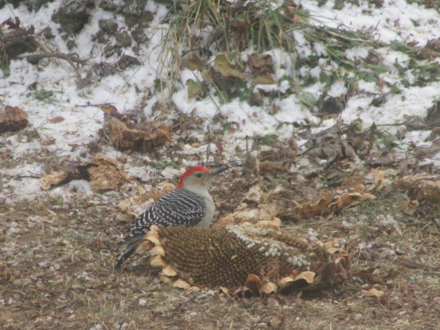 Hello everyone! I have been talking about making a post about the birds we have had over the winter so here it is… I guess it all started on December 24 when I started feeding the birds when led to me taking photos. GEEZ! I had grown several sunflowers during the summer for the birds so I put a couple of them under a tree on the south side of the house so I could see what the birds would do. I always fed the birds during the winter in the feeder in “the other yard” but we couldn’t watch them.