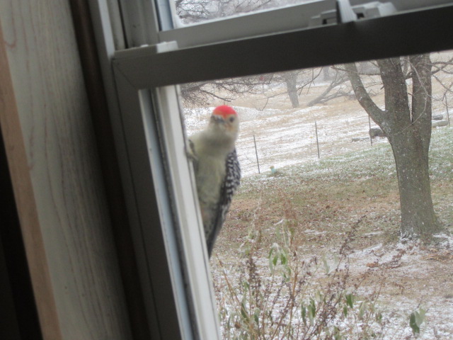 The Red-Bellied Woodpecker watching me through the window on December 26, 2017.