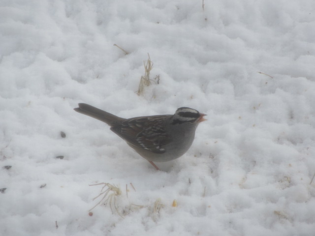 I have found myself being entertained watching the White-Crowned Sparrows and Junco’s scratch for their food… It is like they hop and scratch with both feet at the same time. I should take a video. 🙂