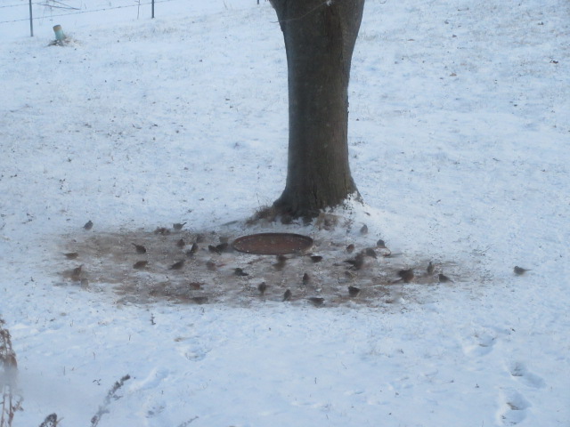 It always amazed me this winter where they would be when the feed was all gone. As soon as I scatter it out and go to the house, they swarm in and start eating.