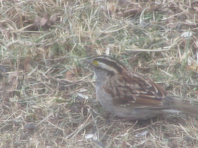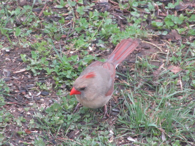 So, where do I begin… I have identified 20 different species of birds over the winter from my window that feed under the tree and by the house and have photos of 19. Most of the photos I took were through the window. At first, there was no screen on the window because I had to take it in for repair (from the Crap Myrtle bush). Then after I replaced the screen and zoomed in, the screen also zoomed in. These photos are far from professional quality. 🙂 The birds are always busy hopping around so getting good zoomed in photos is not easy. It may take 10 photos of a bird to get one or two. I think I need advice from Tom Hutton of Tootlepedal’s Blog. He takes some INCREDIBLE photos of birds!