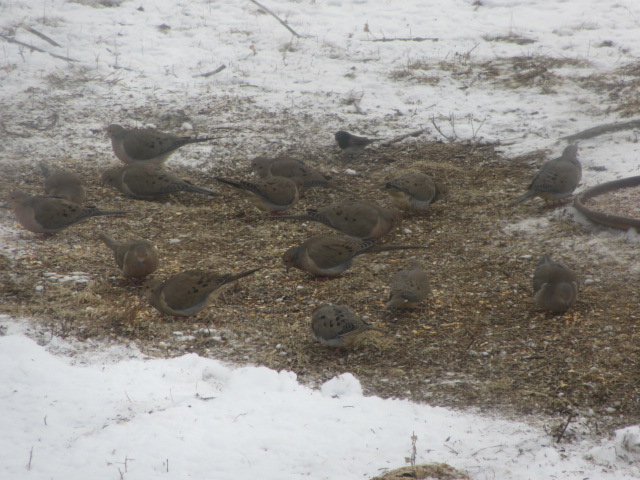 I didn’t know a whole lot about birds until lately. Well, I still don’t know much. 🙂 Anyway, I had no idea Mourning Doves flocked together during the winter.