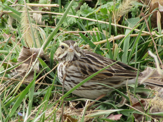 All About Birds says, “Savannah Sparrows are one of the most numerous songbirds in North America, and while sometimes overlooked, are likely visitors across the continent. In summer, they don’t hesitate to advertise their location, belting out a loud, insect-like song from farm fields and grasslands.”