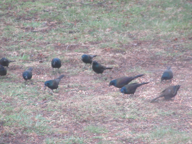Who loves the Common Grackle? I have no idea who would. There are a few bird species that most people, and other birds, think they can live without. The Common Grackle and the Starling are two of them. They are larger than the other birds and sure push their weight around. When the Grackles come to feed, most of the other birds fly off. They don’t seem to mind sharing with Blue Jays and Cardinals as long as there aren’t too many.