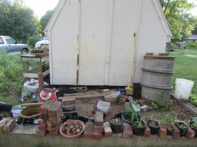 I have the longest history with the Aloe maculata ‘Kyle’s Grandma’ than any other succulent here. When I was living in Mississippi, a friend of mine brought me a couple of offsets from his grandmother’s Aloe (spring 2009). I didn’t know what species it was at the time, so I called it Aloe ‘Kyle’s Grandma’. I had even met his grandmother yet but they all liked it that I named the plant after her. I named a lot of plants after the people who gave them to me. Anyway, at first, I found out this Aloe was Aloe saponaria, which it was at the time. When The Plant List first came online in 2010 I found out Aloe saponaria was a synonym of Aloe maculata. As usual, were a few differences between the two species, mainly having to do with their inflorescence (flower cluster). I was told, of course, the species is variable… Whatever you choose to call them, Aloe maculata is a great plant that freely offsets. I have literally potted HUNDREDS of these plants and gave them away to friends or anyone that wanted one. These plants will get HUGE and prefer their offsets to be removed from the pot. If you don’t do that you will have a big problem… The main plant in this pot grew to 19″ tall x 42″ wide by the time I moved the plants inside on October 11 last year. Unfortunately, it died in the spring before I moved the plants outside. I had screwed up and put the pot on the back porch one fine sunny day before spring arrived. I am not sure if it got too cold or if it was too much sun all at once. Whatever happened, it died leaving behind a bunch of orphans… I intended to put them in their own pots but got so busy I didn’t have time… So, here they are still in the pot on October 15… If you want to read more about this plant and my history with them, click on the name above.