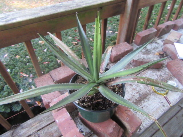 I still use the name Agave univittata var. lophantha because it has a center stripe. It is/was a legit scientific name that was applied to this variety in 1959 even though it is now supposedly a synonym… At one point it was even Agave lophantha var. univittata (1914). After all, this is my blog and I can call it whatever I choose. 🙂 Agave lophantha goes back to 1829 and Agave univittata only dates to 1831… I better stop there.