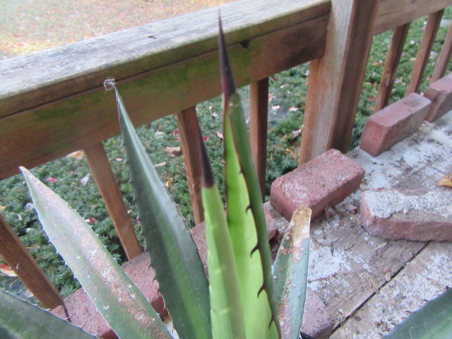 Most Agave species have a VERY sharp needle on the end of their leaves and spines along the margins. Did I mention they are very sharp?