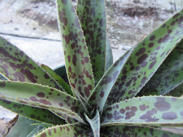 Hmmm… I just discovered a problem with starting at the beginning of the alphabet. Maybe I should have started at the end. Although the Aloe maculata are all doing GREAT as always, I have been promising it I would divide their pot for a couple of years. Maybe three. I had one in another pot that “somehow” contacted mealy bugs last winter and they kept coming back. So, I did a terrible thing and threw it out the back door. The big pot was in my bedroom and it would get an occasional bug but nothing serious. Isolating this plant would be a problem, so I decided to put it in the basement in front of a window. I remember I kept a lot of plants in the basement during the winter before and they always did fine. Well, the bugs didn’t like the conditions and they left and the Aloe came through with flying colors like it had been in perfect conditions. These plants are descendants of the Aloe maculata I called ‘Kyle’s Grandma’ that was given to me by a good friend, Kyle, when I was living in Mississippi. The plant, actually I think there were two, were from his grandma, Brenda, in 2009.