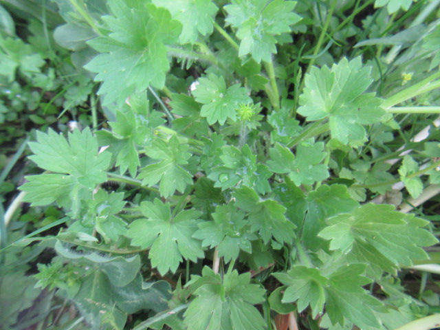 AH HA! Finally, I took some good photos of the Ranunculus parviflorus for a positive ID.  There are several Ranunculus species on the farm that can be tricky to ID. This one has distinctively different leaves. Its common names are Stickseed Crowfoot or Stickseed Buttercup. Sometimes it is referred to as Small-Flowered Buttercup but that name is more commonly used for Ranunculus abortivus. This species forms dense colonies or clumps while most species here don’t. No page for this one because it is a work in progress.