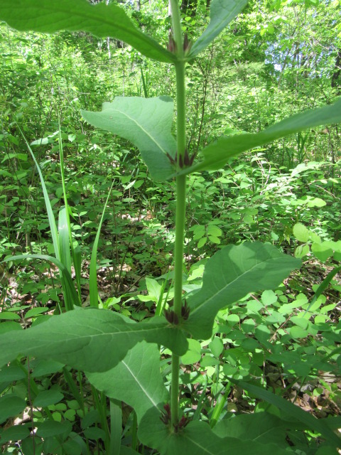 I did find this plant again on the 23rd but not necessarily where I spotted it next to the Triosteum… There is A LOT of this species and they seemed to multiply before my eyes. Silene stellata is a perennial that populates by seed and also spreads at the base where it can send up multiple stems. I wanted to check on this species because it supposed to start flowering in May and continue through September. It will have really NEAT flowers. Unfortunately, no flowers yet… Did I mention the flowers will be really NEAT?