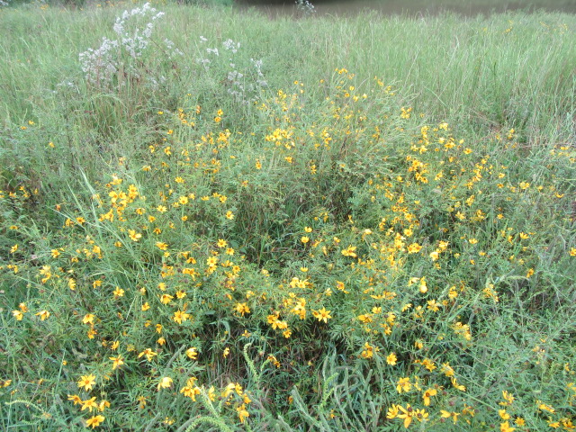On the bank on the south side of the pond was a nice-sized colony of Bidens aristosa (Bearded Beggarticks/Tickseed Sunflower).