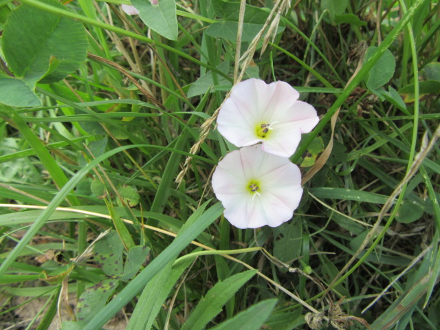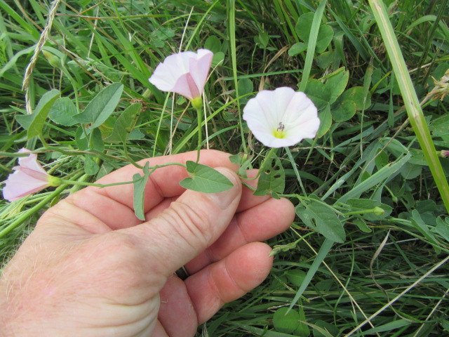 The other morning glory-looking vine is Convolvulus arvensis (Field Bindweed). I first identified this species on a friend’s pasture in 2019. It has been growing in the ditch for a few years but I didn’t give it much thought. The flowers are either white to mostly pink…