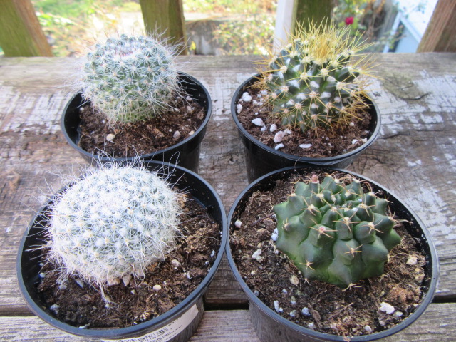 I knew one was a Gymnocalycium and the other three were Mammillaria species. The label on the side of the pots…