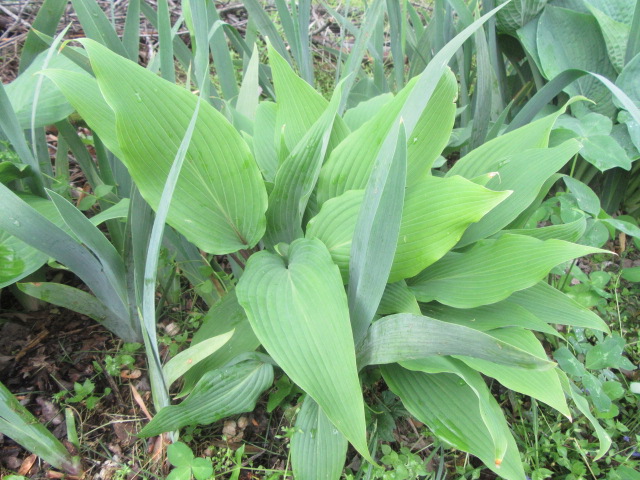 The top photo is the Hosta ‘Potomac Pride’. I was glad to see it has started coming up. I was wondering about it since the deer (one particular doe in general) completely destroyed it early and kept eating it all summer. But, as you can see, there is hole in the center where the main plant used to be. GEEZ! It had gotten so big before!