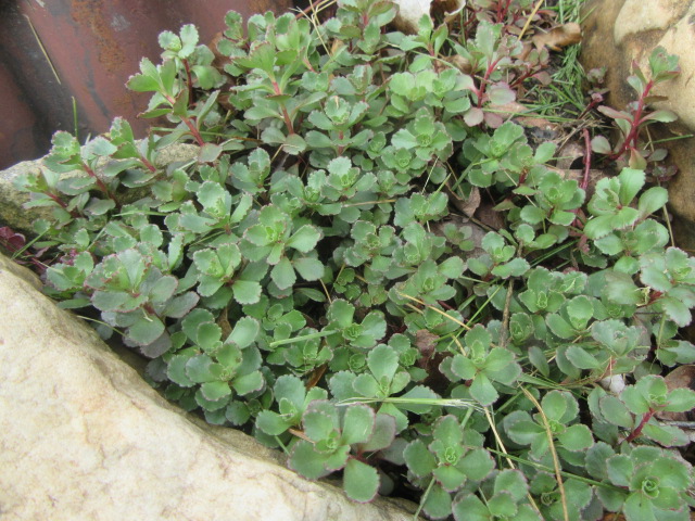 The Ajuga reptans ‘Chocolate Chip’ made it through the winter wherever it is growing. It seems to spread during the winter and this photo is one that is completely out of place. Well, I just let them grow wherever they want because you never know. One of the main (oldest), umm, clusters is getting too thick and needs some thinning out. They can have issues if they are too thick. I like this cultivar better than some of the others because of its smaller, dark leaves.