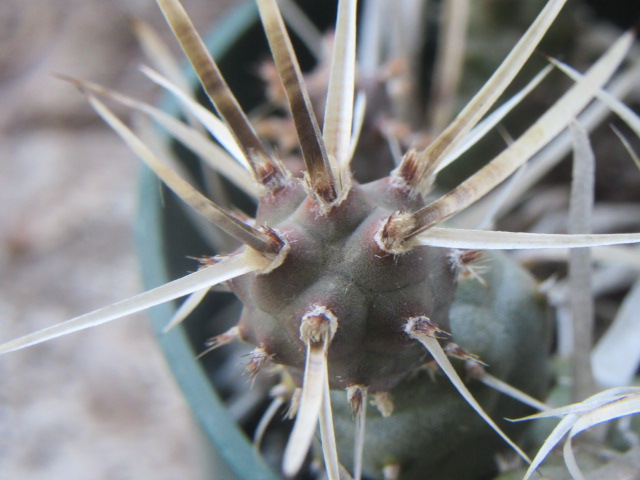 This is not a very good photo, but you can see this plant’s tubercles and glochids. Glochids are those tiny little spines that get stuck in your fingers that are nearly impossible to get out. Some species of Opuntia (Prickly Pear) have those and I remember them well when I was a kid. I don’t remember who had one, maybe my grandma, but I got them in my fingers and I didn’t like it very well. It was one of those with the pads that didn’t really have long needles, but it had those darn fuzzy glochids. I have never brought any of those home…