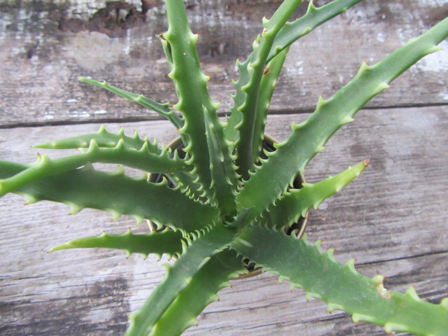 Hmmm… I just discovered a problem with starting at the beginning of the alphabet. Maybe I should have started at the end. Although the Aloe maculata are all doing GREAT as always, I have been promising it I would divide their pot for a couple of years. Maybe three. I had one in another pot that “somehow” contacted mealy bugs last winter and they kept coming back. So, I did a terrible thing and threw it out the back door. The big pot was in my bedroom and it would get an occasional bug but nothing serious. Isolating this plant would be a problem, so I decided to put it in the basement in front of a window. I remember I kept a lot of plants in the basement during the winter before and they always did fine. Well, the bugs didn’t like the conditions and they left and the Aloe came through with flying colors like it had been in perfect conditions. These plants are descendants of the Aloe maculata I called ‘Kyle’s Grandma’ that was given to me by a good friend, Kyle, when I was living in Mississippi. The plant, actually I think there were two, were from his grandma, Brenda, in 2009.