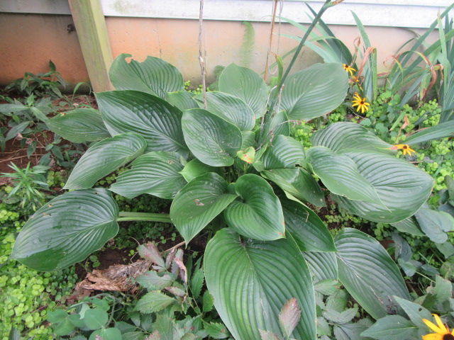Hosta ‘Guacamole’ is now flowering and doing very well. The Hosta in this bed are mainly under a large maple tree and are still doing very well. Except for Hosta sieboldiana ‘Elegans’ which has been struggling all summer. I really miss its awesomeness and it may not survive this winter.