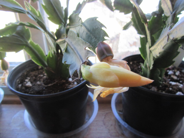 Schlumbergera truncata, the yellow-flowered plant, on 2-23-21, #782-3.