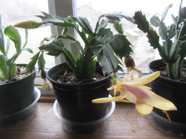 The yellow-flowered Schlumbergera truncata I brought home looks very nice. Mrs. Wagler said the flowers will be kind of a creamy color, not bright yellow.