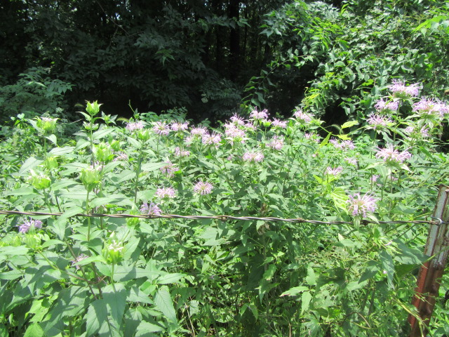 Of course, the Monarda fistulosa (Wild Bergamot) is quite common here now and new colonies pop up here and there every year. Now there is even a cluster in the ditch next to the house. Of course, I let it grow which may look a little strange where it is. Once it gets done blooming will cut it down. Well, I even let the Hemp Dogbane (Apocynum cannabinum) grow in the ditch in front of the garden. I am sure it makes some people driving by wonder why I am letting weeds grow along the street like that… Going wild, I guess. 🙂