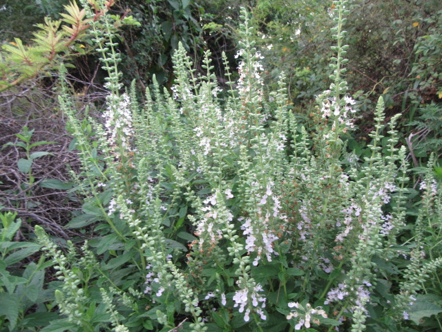 I think the flowers of the American Germander are pretty neat but sometimes it is really difficult to get close-ups. Right now, their leaves are riddled with holes.