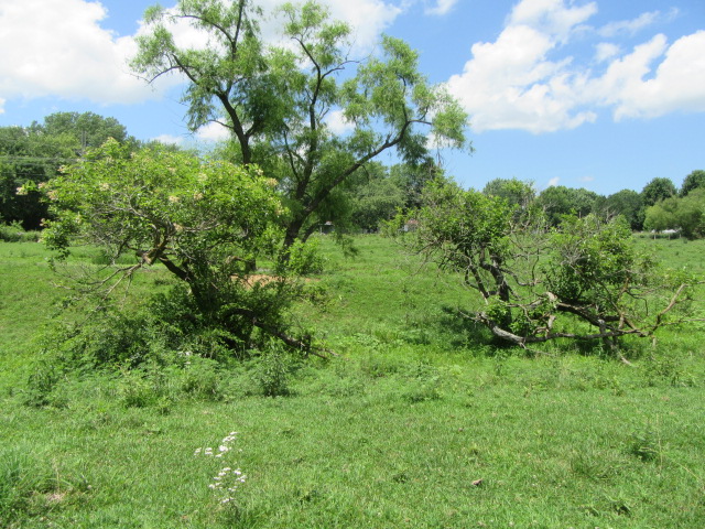 After leaving the Monarda, I walked back toward the two Mulberry trees along the ditch where the pond drains. I noticed something a bit off…